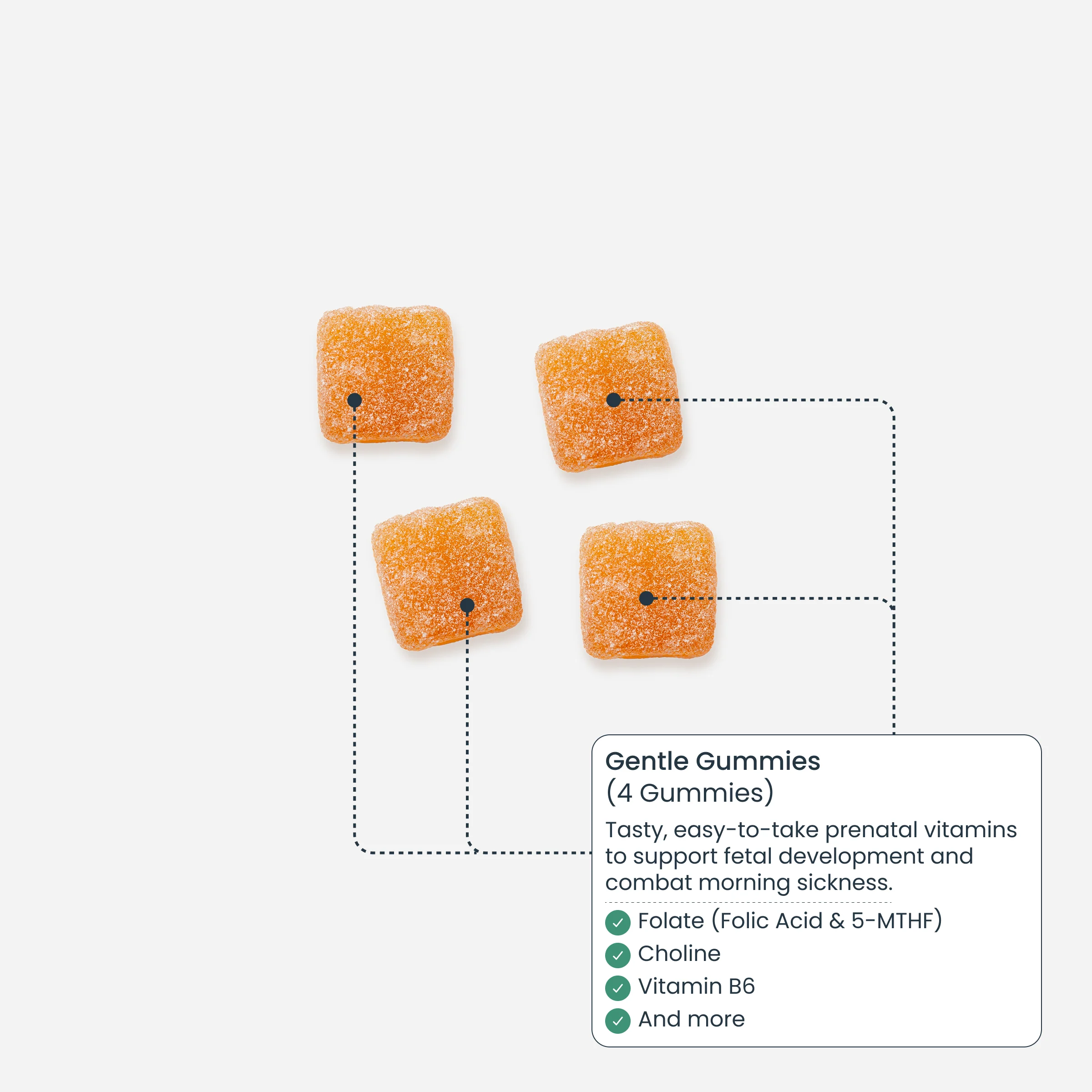 - Prenatal gummies with essential nutrients like Folic Acid, Methylated Folate, Choline, and Vitamin D